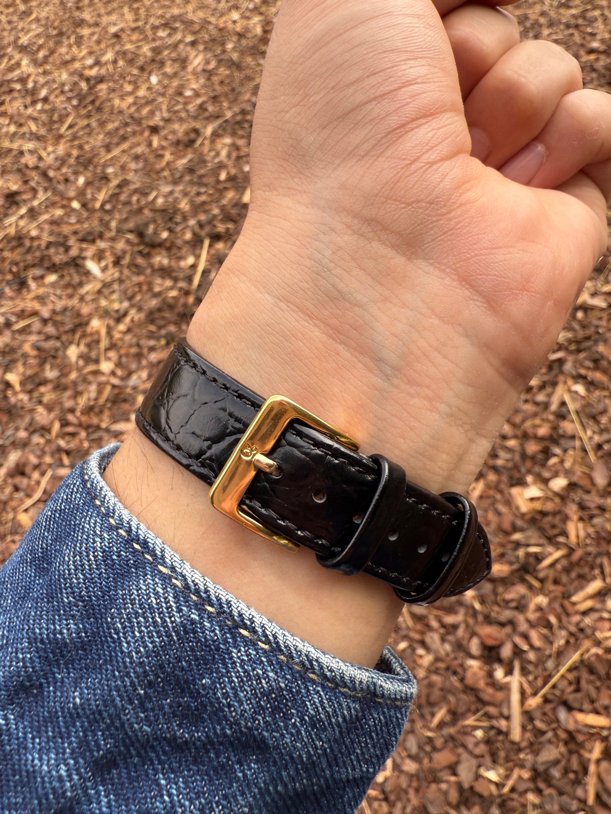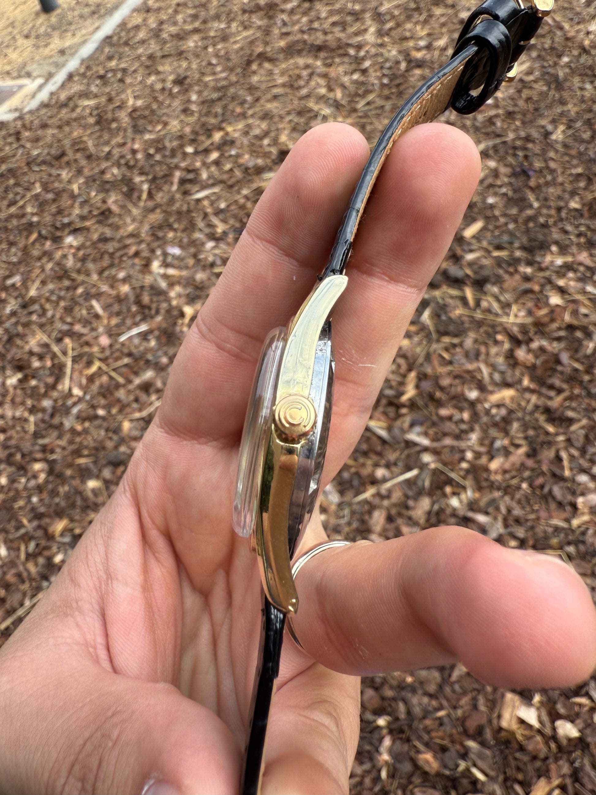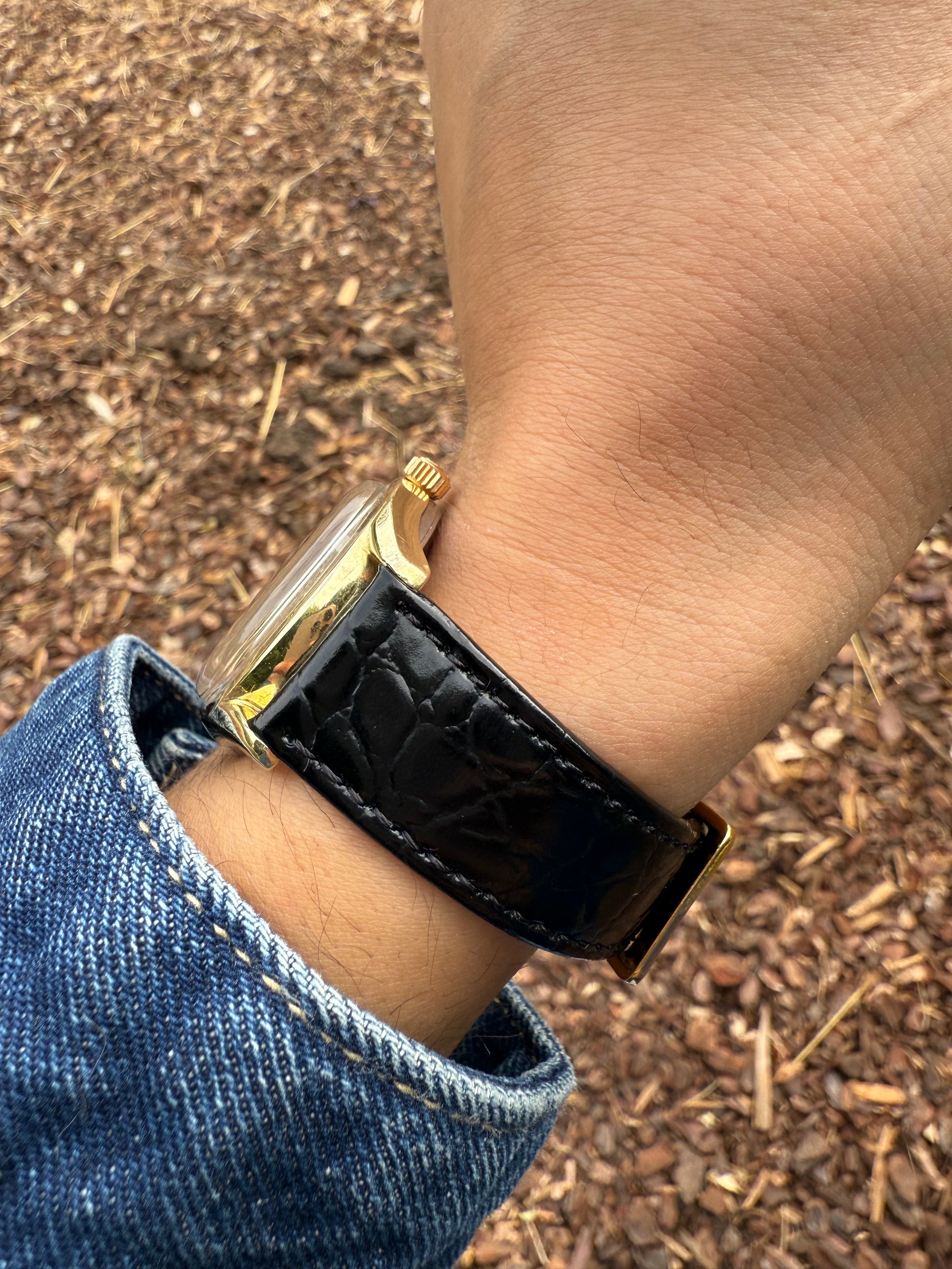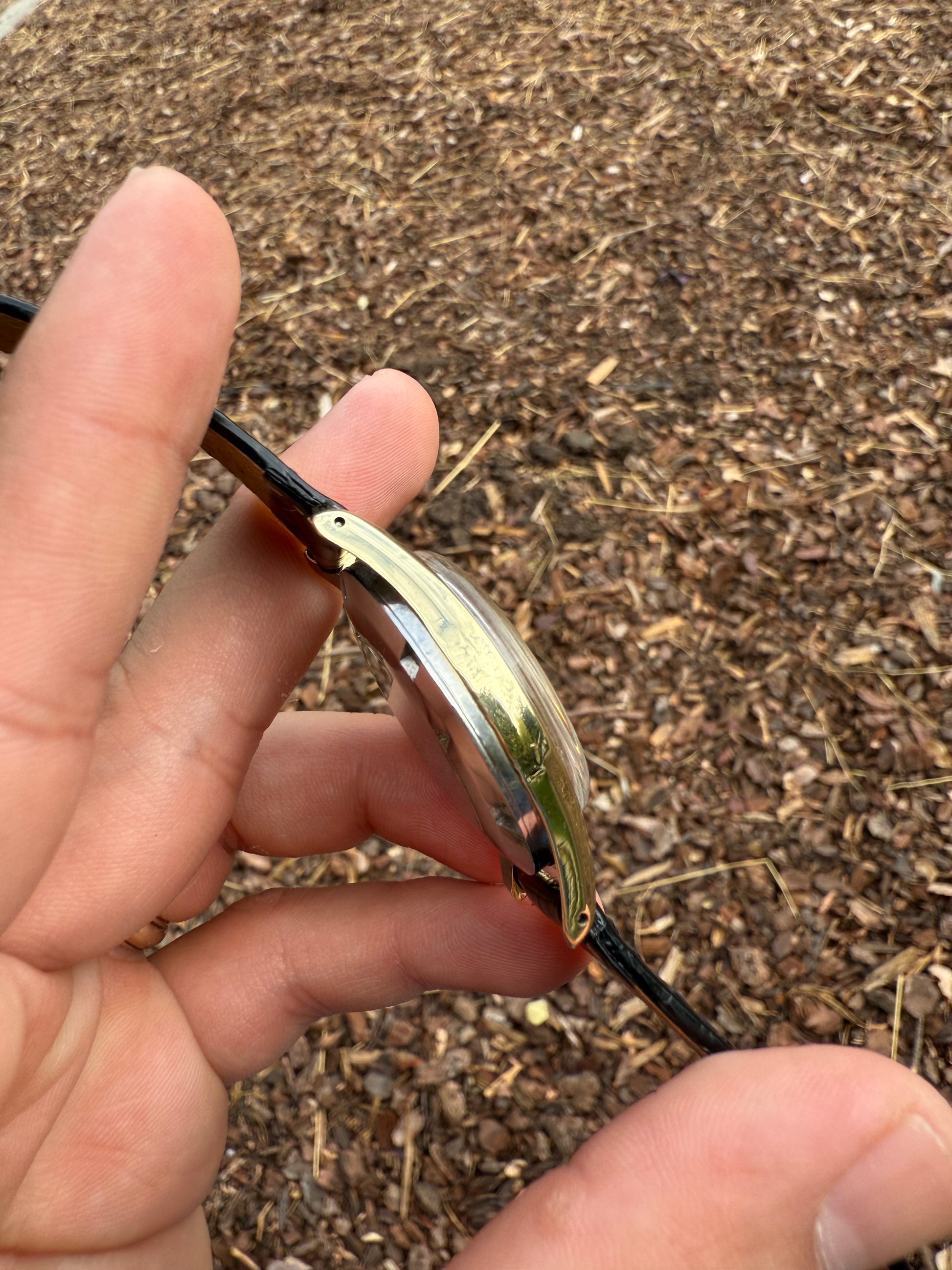 Este modelo es de los primero Ds del mercado cuando aun no portaban la mítica tortuga en la parte de atrás por eso llamado el Pre-tortuga y en la caja por dentro viene especificado Swiss patent pending que quiere decir que la patente Ds que traducido al español quiere decir DOBLE SEGURIDAD aun estaba pendiente de aprobación una verdadera joya de colección en buen estado. Este reloj incorpora una esfera especial de oro de 18k que es solo baño con textura similar al Universal Geneve Polerouter.
