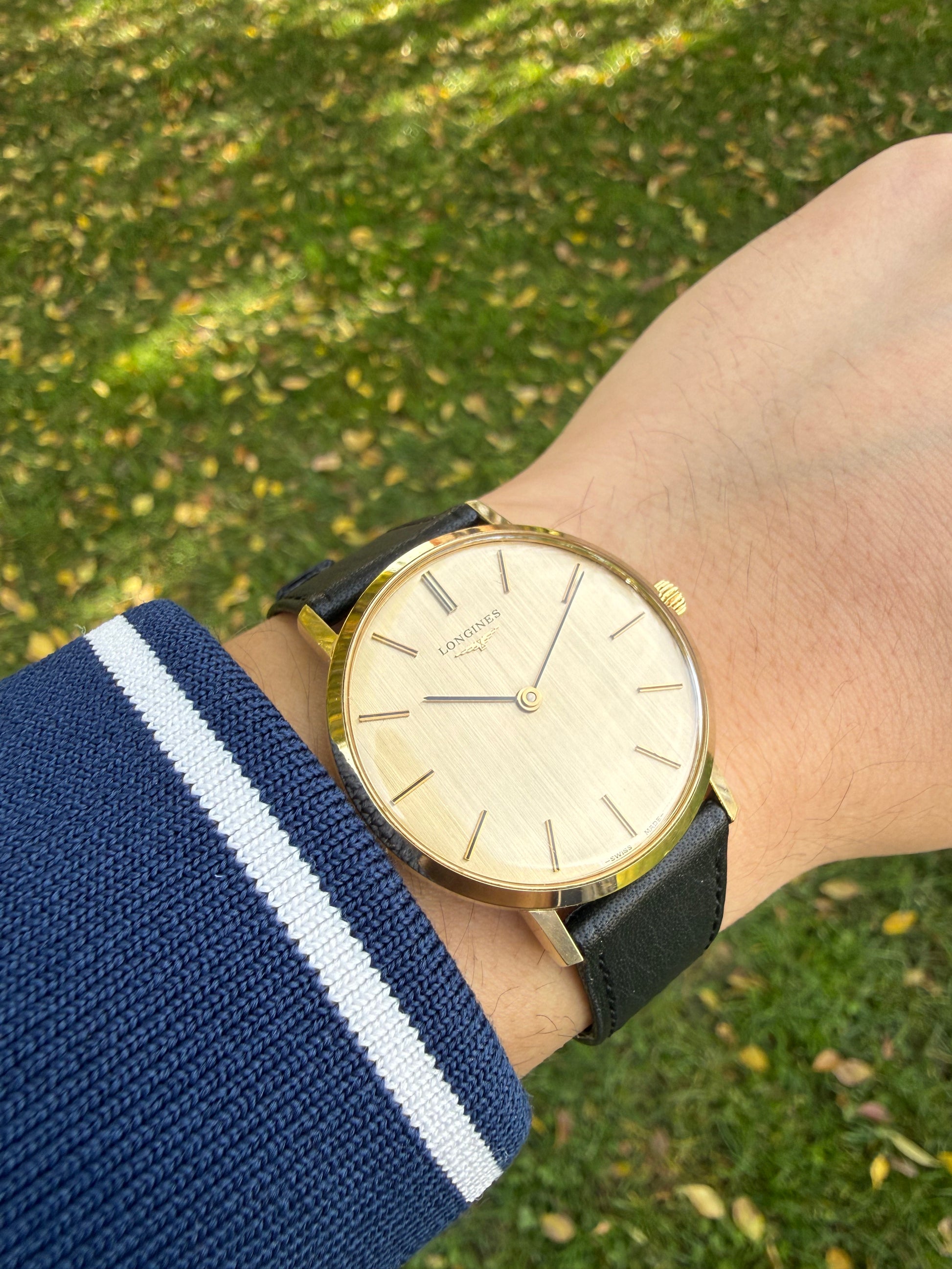 Bonito reloj Longines elegante con esfera color oro texturisada.