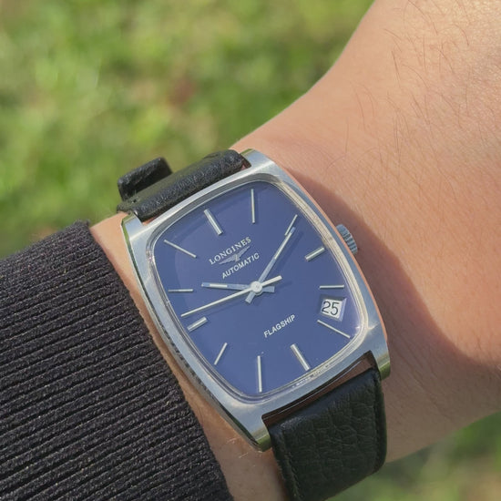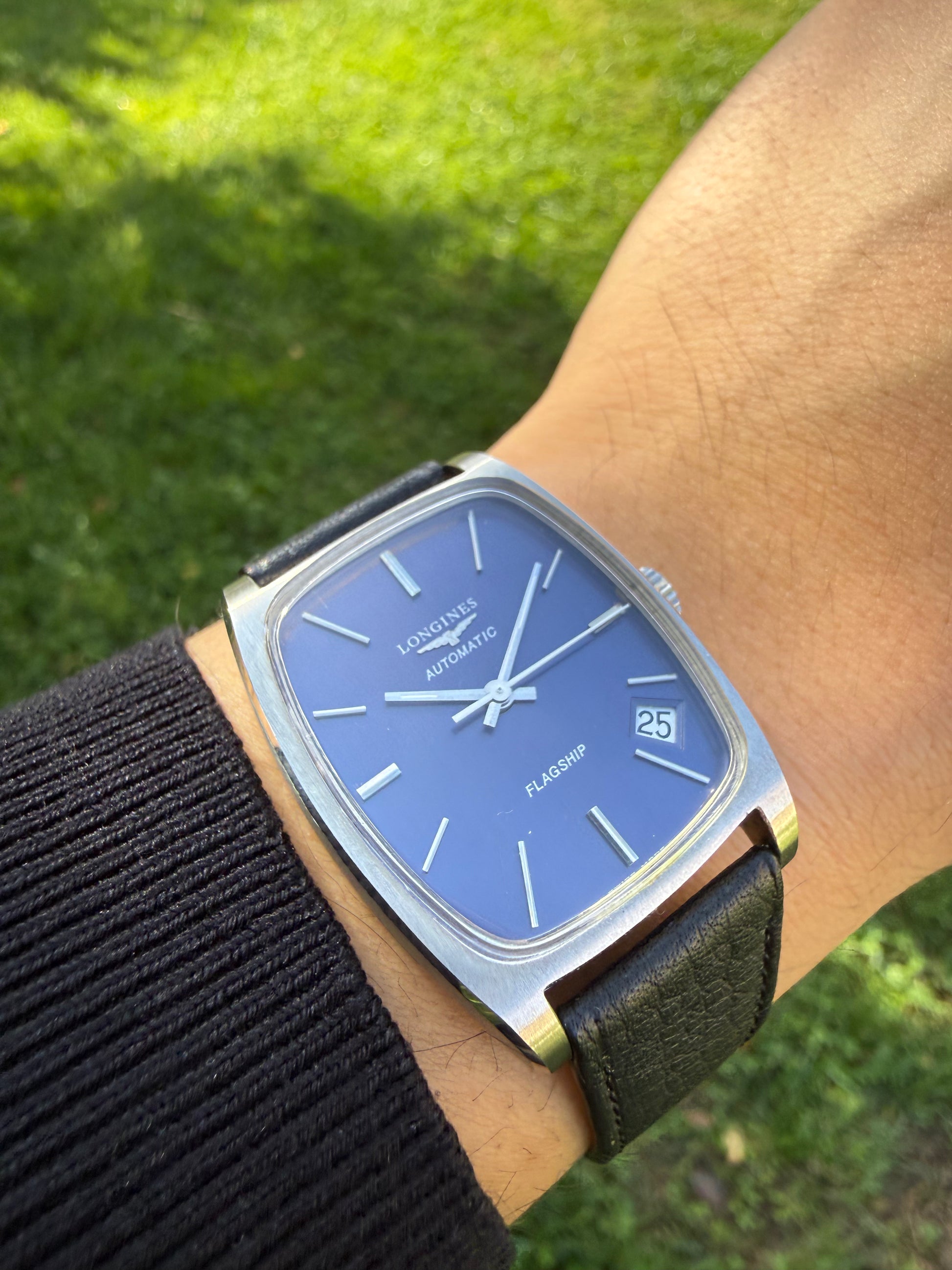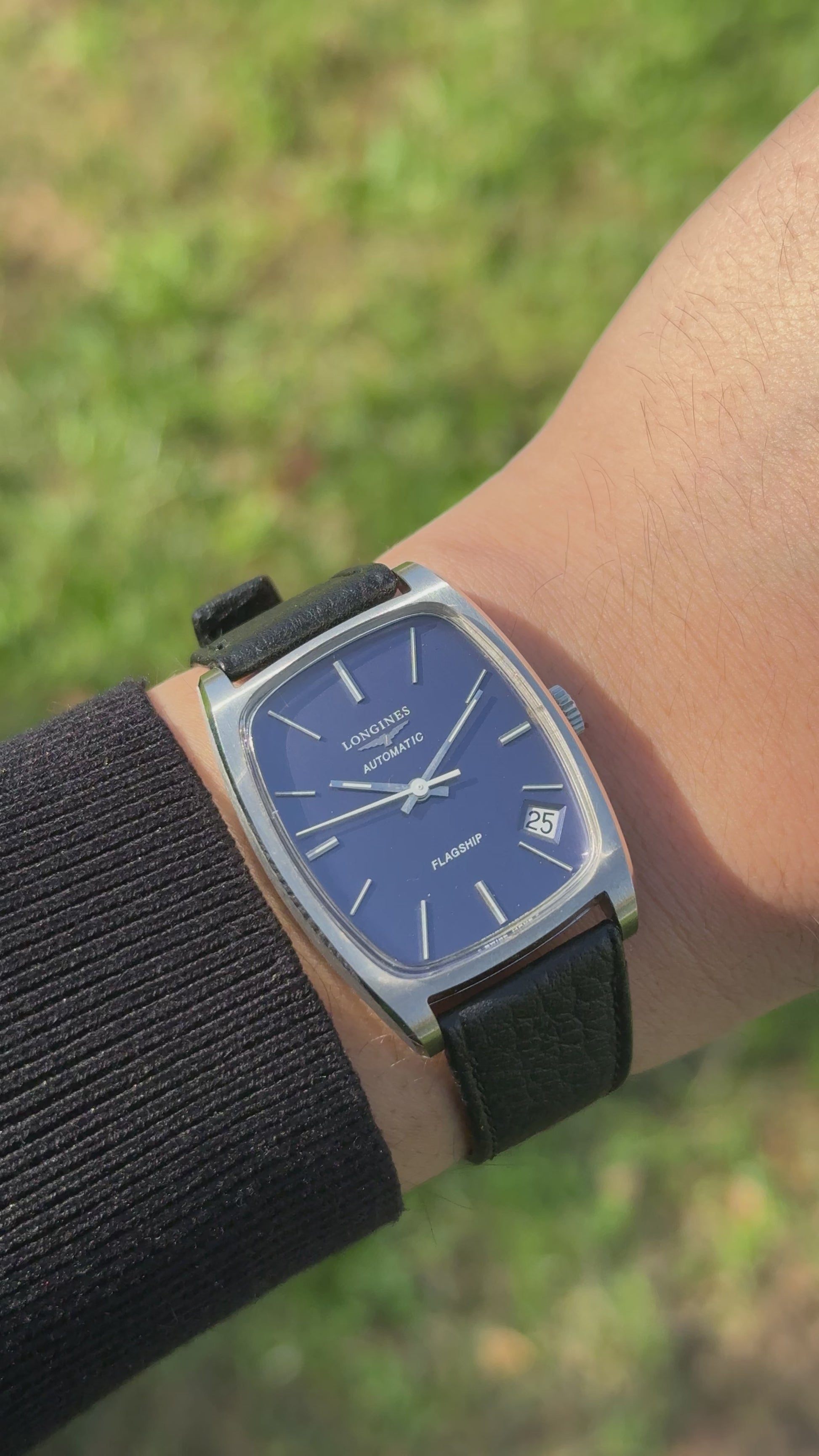 Bonito reloj Longines elegante tipo Tank con esfera azul en estado impecable al igual que el pulido de la caja se conserva intacto y original una verdadera pieza de colección. La correa es original sin uso con hebilla firmada.