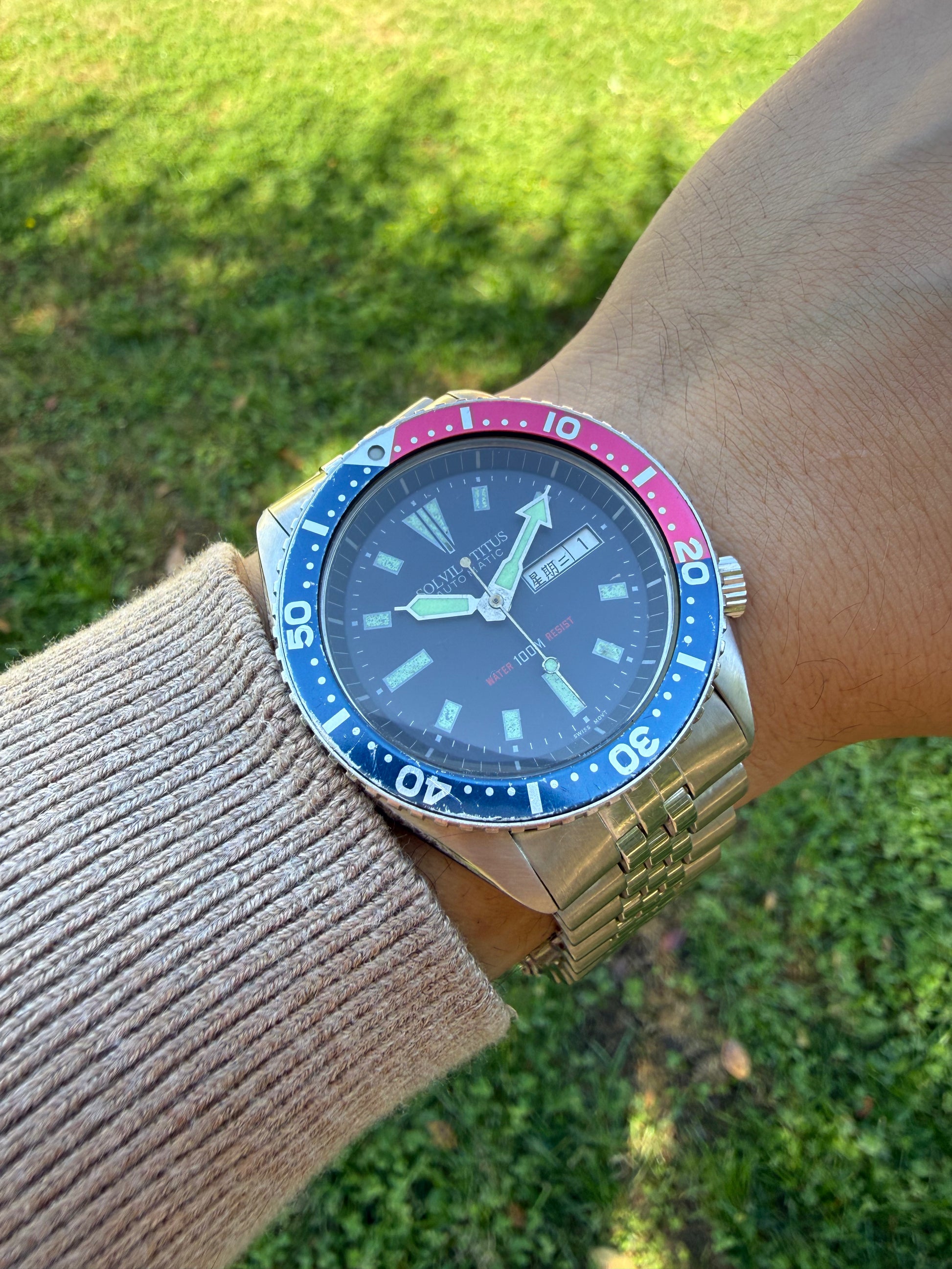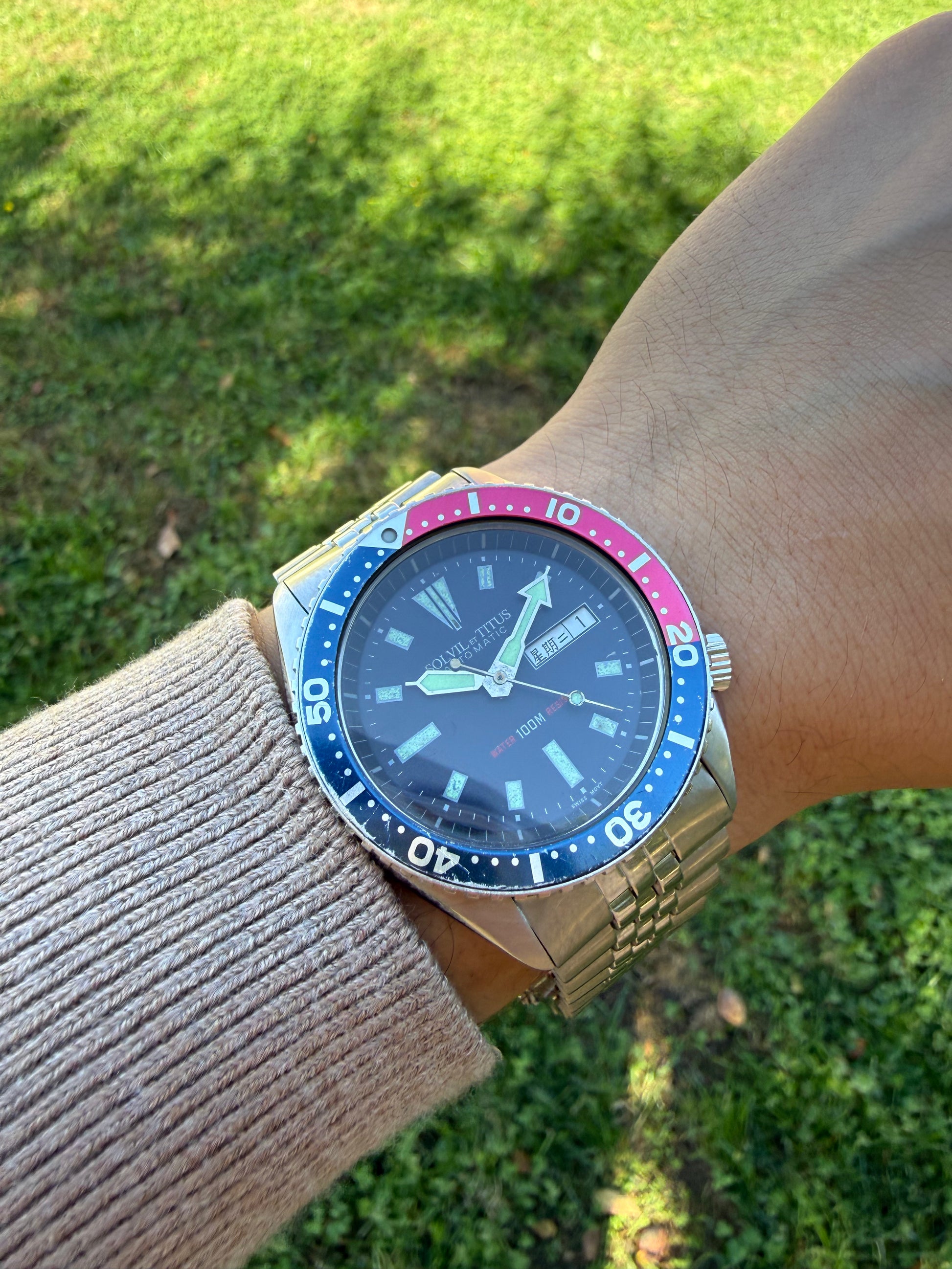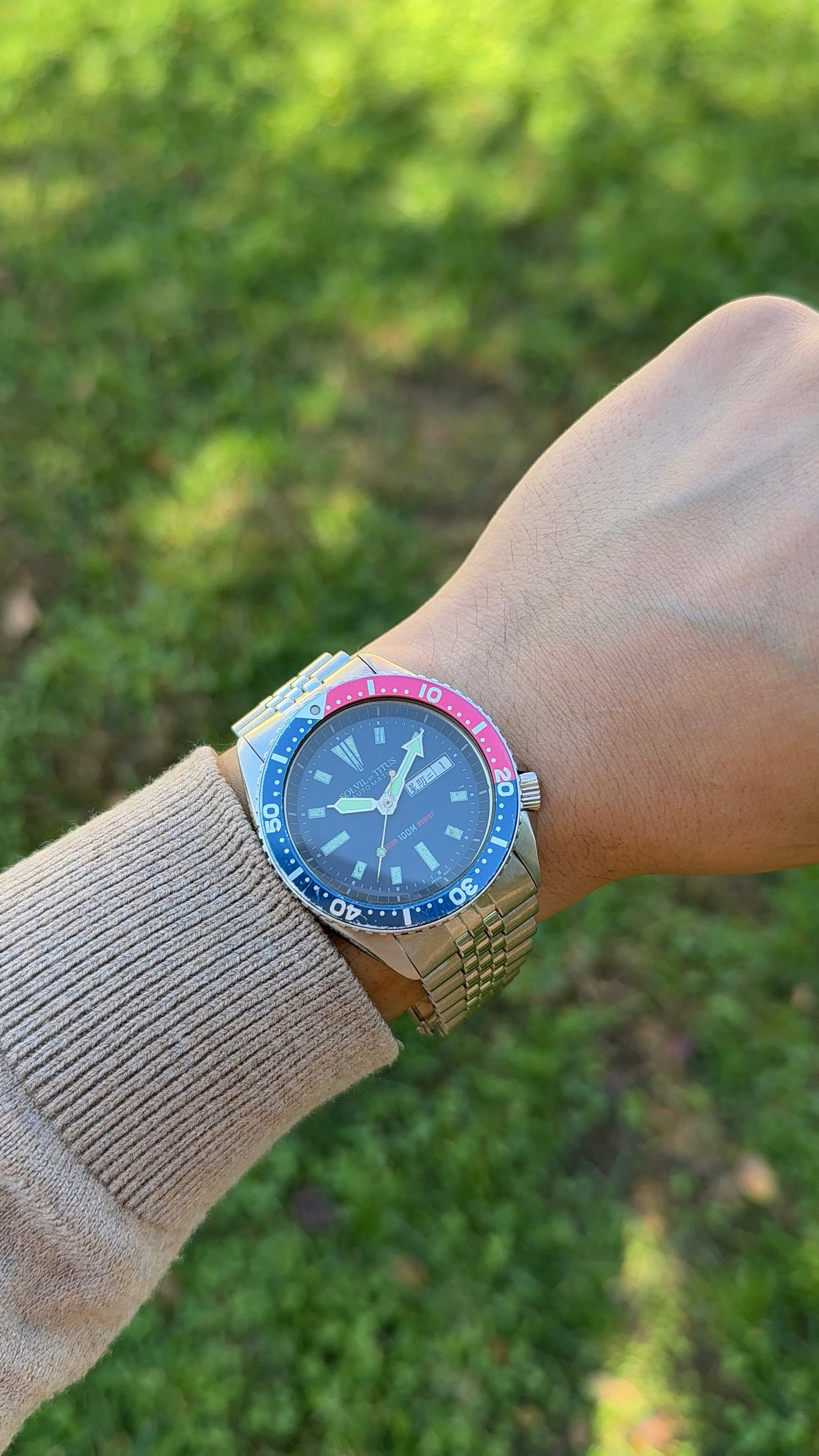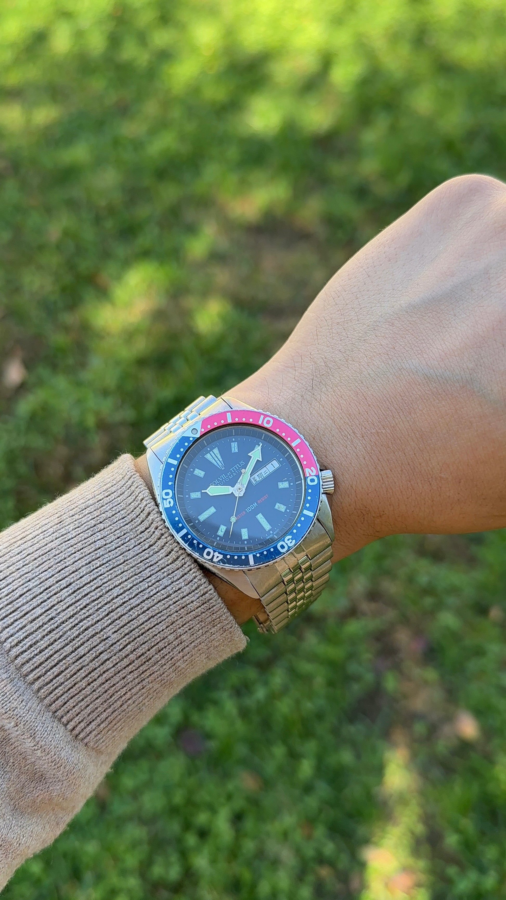 Reloj muy parecido al Seiko 5 Pepsi pero este modelo cuenta con mecanismo suizo una maquinaria ETA 2836 una excelente oportunidad si te gusta la estética del Seiko Pepsi pero con corazón suizo