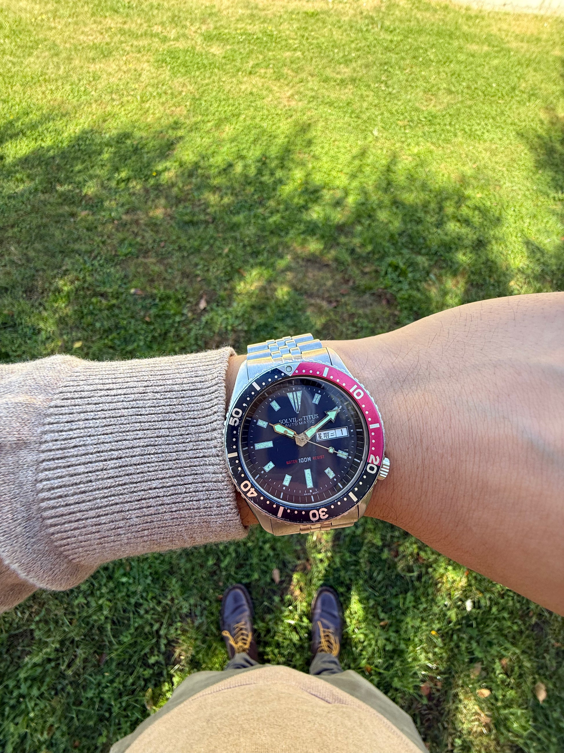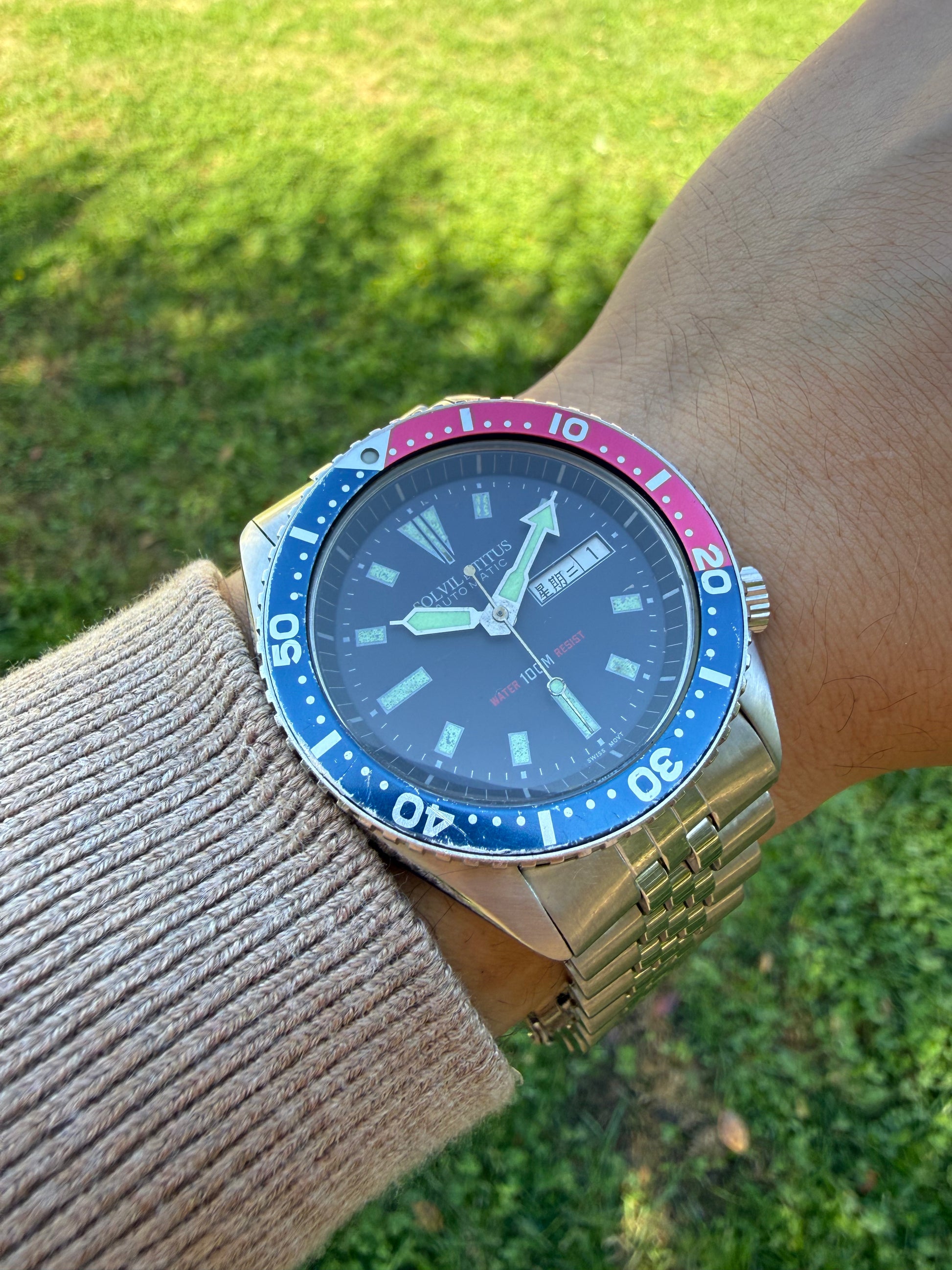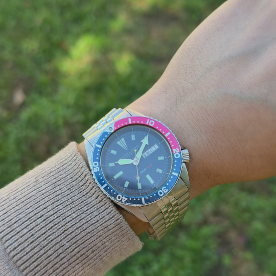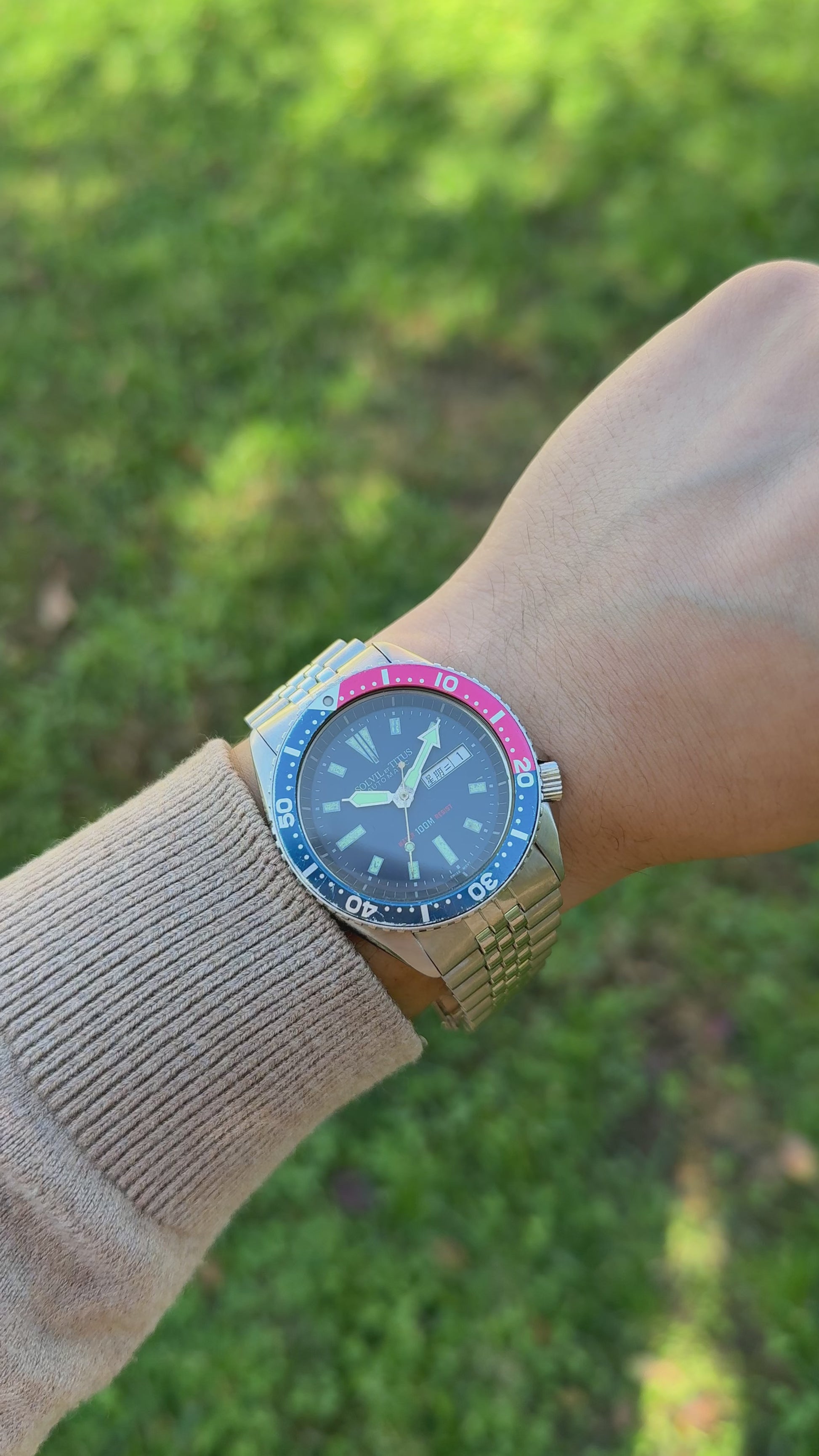 Reloj muy parecido al Seiko 5 Pepsi pero este modelo cuenta con mecanismo suizo una maquinaria ETA 2836 una excelente oportunidad si te gusta la estética del Seiko Pepsi pero con corazón suizo