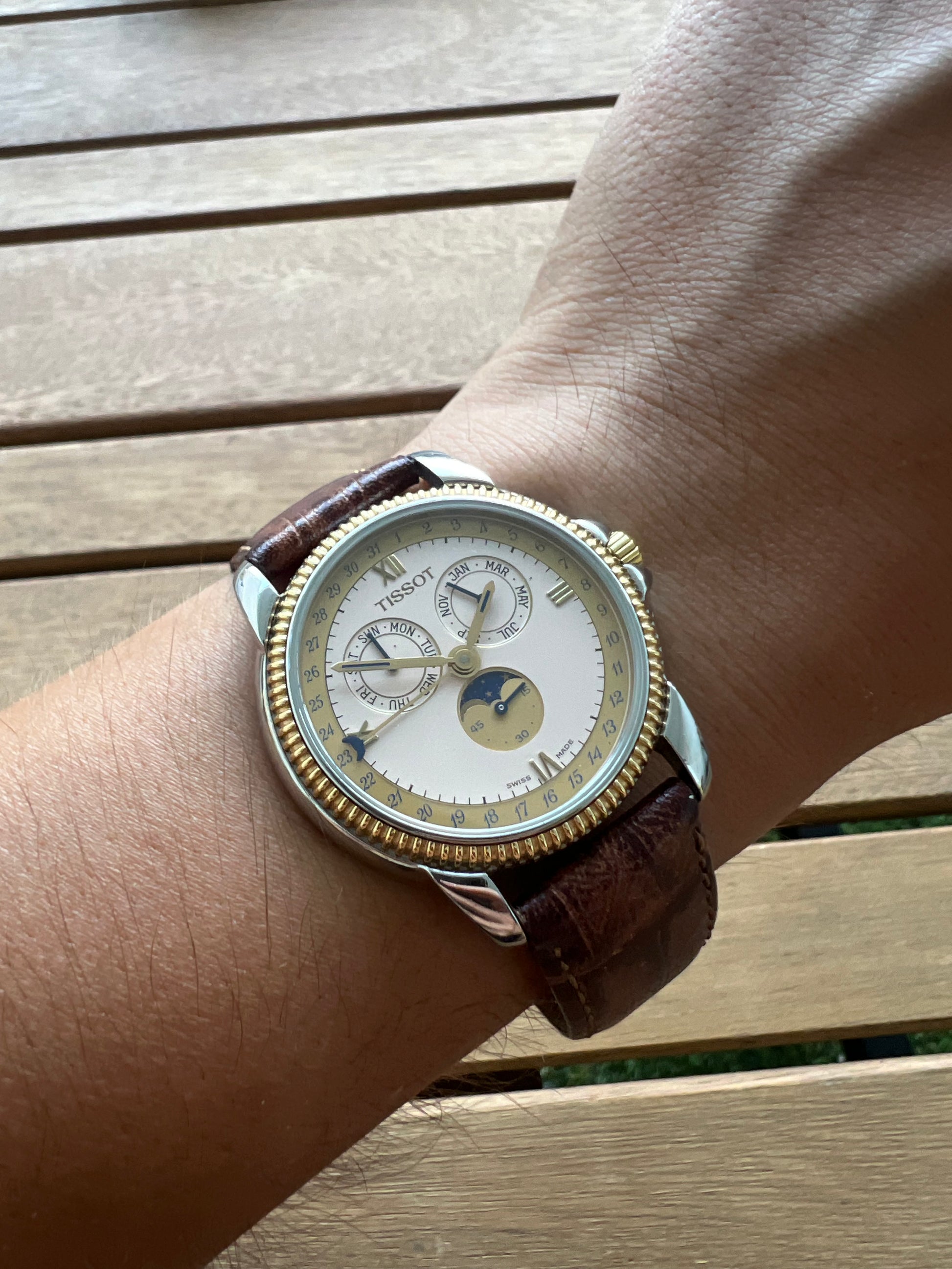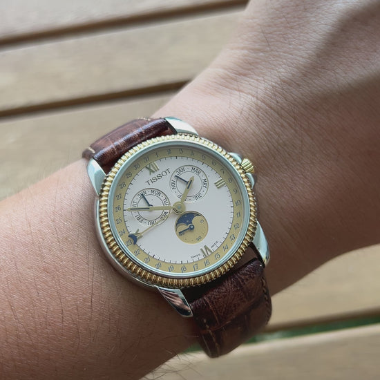 Mecanismo: Suizo de cuarzo complicación día de la semana, día del mes, mes del año en el que estamos y fase lunar.